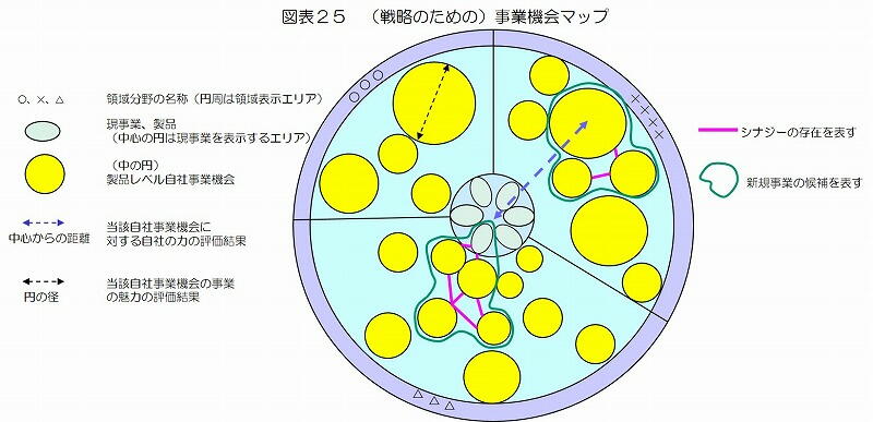 が小さく、事業(機会)相互のシナジーも考慮されていないものであるから、図表25の事業機会マップを使っ