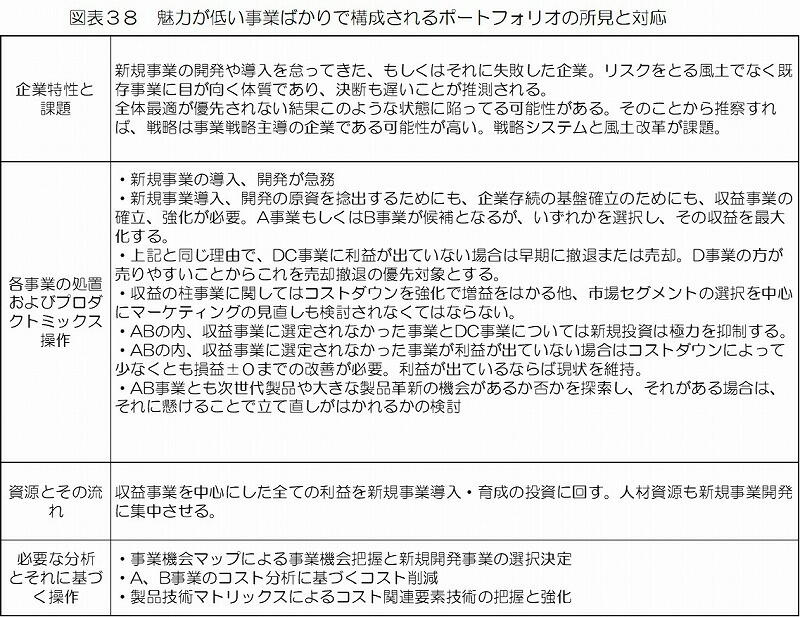 このポートフォリオから得られる判断(解)は図表38 のごとくである。