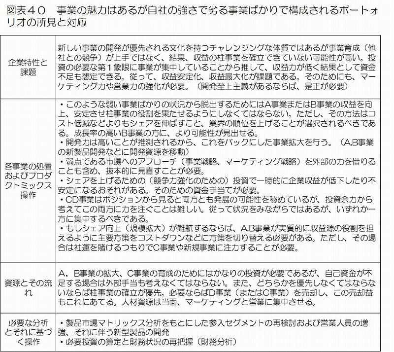 このポートフォリオから得られる判断(解)は図表40 のごとくなる。