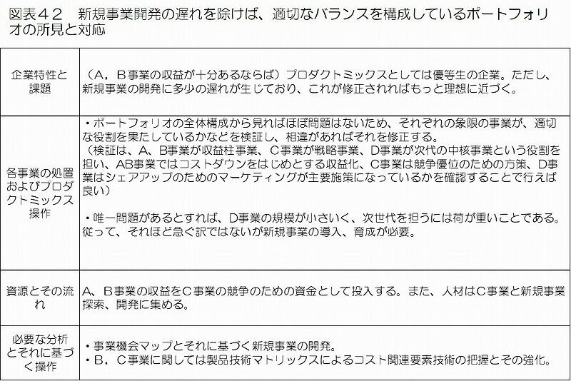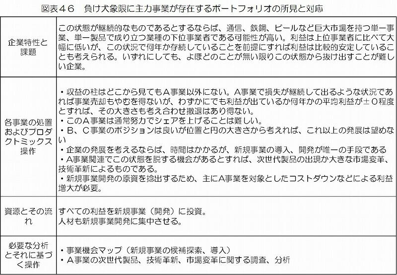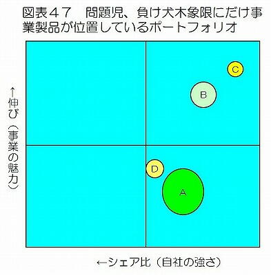 図表47のポートフォリオは前項のそれに似ており、同様の処置が検討されても良いが、前項の例と