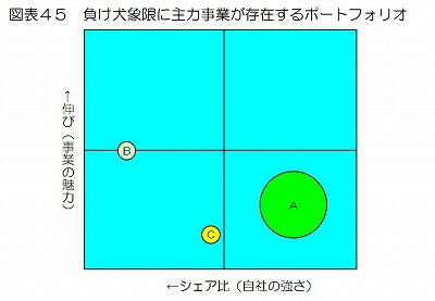 図表45のような負け犬象限に主力事業があるポートフォリオでは必ず主力事業の利益の大きさと安