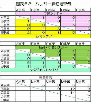ジー」「投資シナジー」「マネジメントシナジー」毎に用意された表(図表68)書き込み、その評点を